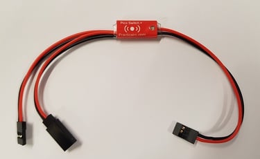 "3 Second" Version - When the switch is plugged into the power supply for the first time the output will turn on and the LED will flash. Securely mount the switch as close to the fuselage or wing surface as possible. To locate the sensor simply sweep over the predicted sensor location, when the switch senses the magnet the LED will go solid (ON) indicating the perfect position. Use a marker pen and mark where the sensor is located and use a piece of double-sided tape and/or a piece of sponge to hold the switch in place. To turn the switch off, place the supplied magnet over the sensor and the LED will go solid (ON) then count for 3 seconds or more without interruption the output will then turn OFF, the LED will flash to confirm and continue to flash until the magnet is moved away.