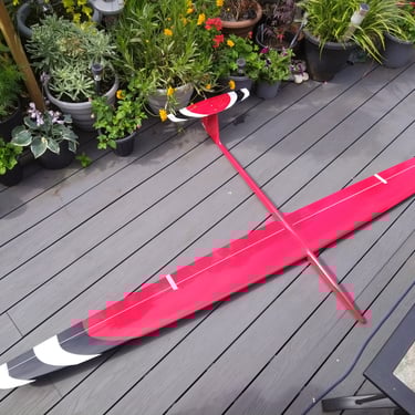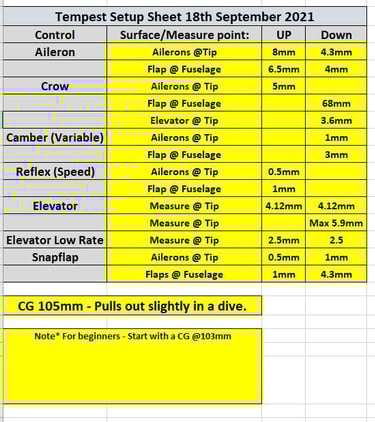 I designed the Tempest as all-round slope soarer – with its excellent low speed handling I recommend the ‘Tempest’ for the beginner to the more advanced pilot. The tail boom is larger than some would expect- this is for rigidity with having a T-Tail and will reduce boom breakages. The airfoils have been designed with a wide range of performance – from thermalling to fast flying and large aerobatic manoeuvres. The Tempest’ doesn’t show any bad habits and will not bite you, believe me I’ve tried.